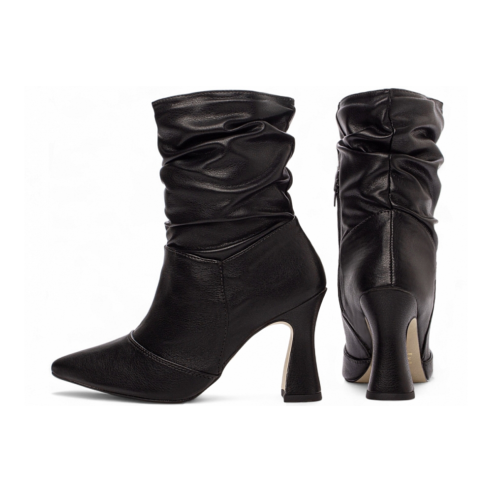 Material: Napa Preto; Enfeites: Zíper na Cor Preto (lateral interna); Palmilha: 8 mm de Espessura, Espuma em EVA, e Taloneira Napa Preto; Forro: Cacharrel, material espumado para maior conforto, na cor Preto; Salto: 9 cm de Altura e Revestido em Napa Preto; Solado em Micro na cor Bege.